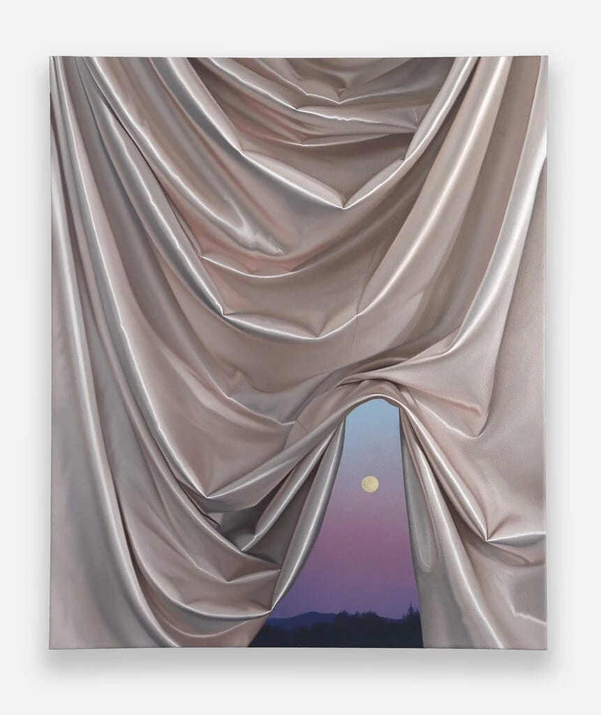 Beaver Moon Over Mt. Monadnock with Soft Gold Satin Fabric