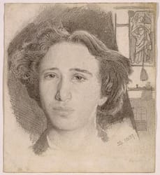When Burne-Jones met Simeon Solomon in the late 1850s, he thought his work as imaginative as anything he had ever seen. Solomon showed precocious talent, exhibiting his first Royal Academy picture at the age of 18 in 1858. During the 1860s he was a highly influential young artist, one of the circle which was moving towards aestheticism, and which included Rossetti, Burne-Jones and the poet Swinburne.