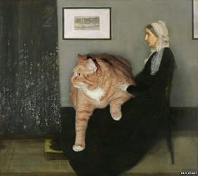 Arrangement in Grey, Black and Ginger. Whistler's Mother and the Cat, based on James Abbott McNeill