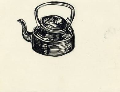 Pen and ink on paper. Signed with initials lower right, typed on the reverse with artist’s address (Yaddo/Saratoga Springs/New York) and title. https://goldenbridgeinmate39.wordpress.com/2012/06/26/