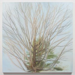 "The winter maple paintings are a tangle of upward reaching, tan branches pressing against a muted blue sky, the concrete and the limitless. Tonally, each branch changes as it rises up. Sometimes the artist registers the change from shadow to light. Other times, the brushstroke stops and becomes a different color. As a rule, the branches tend to be slightly lighter at the top, because they are closer to the light." http://hyperallergic.com/50019/why-there-are-great-artists-part-3/