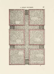A Humument has been a work in progress since 1966 when artist Tom Phillips set himself a task: to find a second-hand book for threepence and alter every page by painting, collage and cut-up techniques to create an entirely new version. The book he found was an 1892 Victorian obscurity A Human Document by W.H. Mallock and Phillips transformed it into A Humument. The first version was printed by the Tetrad press in 1973, and Phillips has continued to transform it, revise it and develop it ever since.