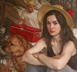 Of this painting, the artist says: “This depiction of a modern family on a picnic is meant to echo the well known theme, suggesting the way ordinary human life is ennobled by the Incarnation.