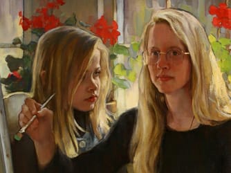 This painting of my wife and daughter is one of many I did at the time in alkyd color (Winsor & Newton) on Davey Board (an archival cardboard used for