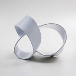 The first edition Tomie Ohtake created for the gallery, in celebration of its centenary, is depleted. On the anniversary of Carbono, the artist produced a new work. With its curves that twist into zigzagging waves, this sculpture makes us think of a ribbon dancing in space. A lightweight design, made of firm and durable material, naval aluminum, which painted white, also used in important works such as the series made with steel tubes. (Very rough google translation of https://carbonogaleria.com.br/obra/sem-titulo-225)