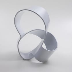 The first edition Tomie Ohtake created for the gallery, in celebration of its centenary, is depleted. On the anniversary of Carbono, the artist produced a new work. With its curves that twist into zigzagging waves, this sculpture makes us think of a ribbon dancing in space. A lightweight design, made of firm and durable material, naval aluminum, which painted white, also used in important works such as the series made with steel tubes. (Very rough google translation of https://carbonogaleria.com.br/obra/sem-titulo-225)