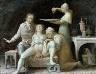 A birth-scene. Oil painting by a French (?) painter, Åbo, Sweden (later Turku, Finland), 1800.