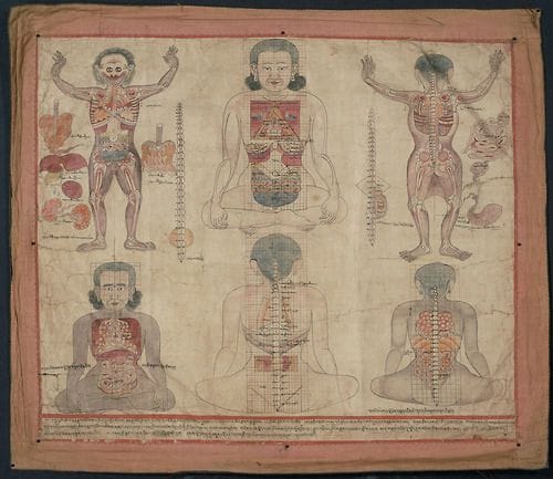 Localization of Viscera in the Torso Tibet or Mongolia; 18th or 19th century Pigments on cloth and brocade Pritzker Collection