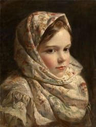 19th century. Girl in a scarf. Some sites attribute this to "anonymous," others to Firs Zhuravlev and still others to Konstantin Makovsky