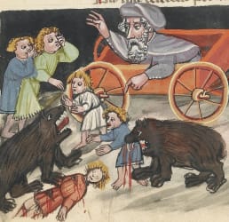 Children being eaten by bears as punishment for mocking a bald man. Germany, 15th century. https://twitter.com/WeirdMedieval/status/1540663097572044802
