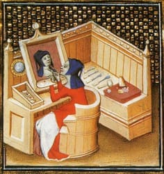 Unknown Artist, from Giovanni Boccaccio (1313-1375), De claris mulieribus, Anonymous French Translantio, Le livre de femmes nobles et renomees, France c 1440 British Library Autoportrait sur bois.