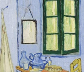 ...Van Gogh created a smaller third version, now at the Musée d’Orsay in Paris, as a gift for his mother and sister a few weeks after making the second. While the 3 paintings at first appear almost identical, when examined closely, each reveals distinct and unique details. (http://www.artic.edu/exhibition/van-goghs-bedrooms)