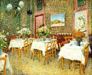 ... another attempt to create a neo-impressionist composition. In this canvas, the green and red complementary colour contrast is the dominant element, but the brushwork already shows the faster, elongated touch Van Gogh would soon begin to use in place of the pointillé advocated by Seurat and Signac. The impatience expressed in the brushwork is underlined by the artist's decision not to use a small stroke throughout, but... http://www.dbnl.org/tekst/_van012200201_01/_van012200201_01_0005.php
