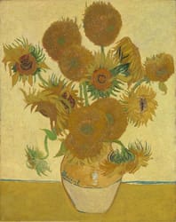 Sunflowers are the subject of 2 series of still life paintings by the Dutch painter Vincent van Gogh. ...the second set, executed a year later in Arles, shows bouquets of sunflowers in a vase. ...Neither the third nor the fourth shows the dozen or 14 flowers indicated by the artist, but more—15 or 16. For various versions and repetitions, see https://en.wikipedia.org/wiki/Sunflowers_(Van_Gogh_series)