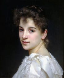 Gabriel Cot was the daughter of Bouguereau's most famous student, Pierre August Cot. Bouguereau was planning to use her for one of his major paintings, and so he started this as a study for that painting, but, as he worked, he was so captivated by Gabriel's beauty, including her intense inner beauty, that he finished it as one of his only un-commissioned portraits.