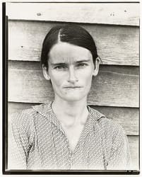 Taken for Fortune magazine while Evans, on leave from the FSA, was traveling with the writer James Agee, this famous photograph shows a tenant farmer’s wife standing outside her house. With patient dignity, she looks straight at the viewer, a shy half-smile on her lips. This work is part of a remarkable collaboration with Agee published in the book Let Us Now Praise Famous Men (1941). As one of the nation’s finest documentary photographers, Evans continued this exacting and lucid description of American culture throughout his career.